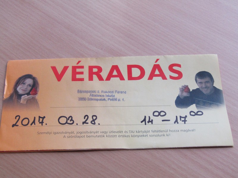 A Sárospataki II. Rákóczi Ferenc Általános Iskolában már 19 éve valósítunk olyan véradást, ahol a főszervezők a diákok.
