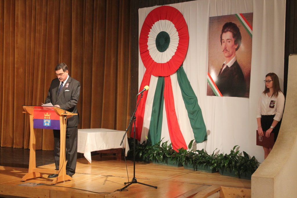 Ezeken az ünnepnapokon példaképként állíthatjuk azokat a nemzeti nagyjainkat, akiknek az életműve, vagy csak néhány fontos időszakban folytatott tevékenysége irányt mutat a XXI. század második évtizedében is a magyarságnak és a Magyarországon élő őshonos nemzetiségeknek is egyformán. Közös jelent élünk és közös jövőt építünk azoknak az örök értékeknek mentén, amik a 48-as és az 56-os forradalmárokat vezényelték. Ezeket az értékeket egyetlen mondattá a Himnusz megalkotója, Kölcsey Ferenc formálta. A HAZA minden előtt, szólt a bölcs költő, és úgy vélem: ha nem tett volna mást, már kerek egész volna az ő életműve.