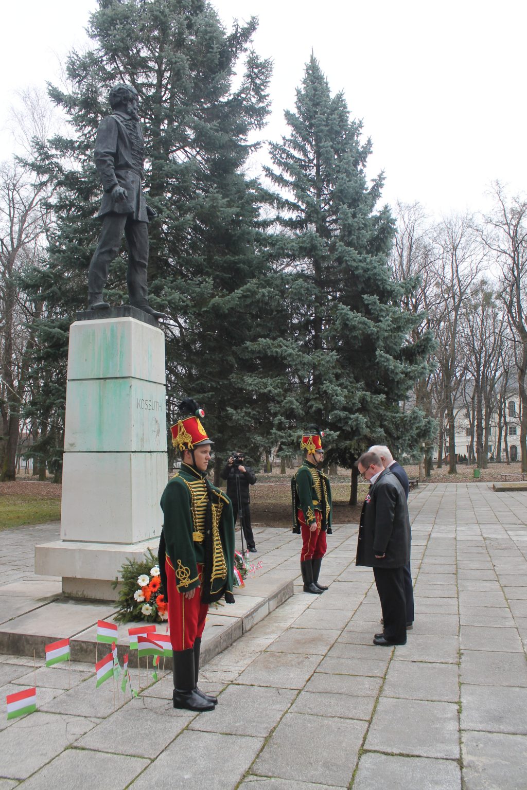 A forradalom és szabadságharc emlékét műsorával az Árpád Vezér Gimnázium és Kollégium énekkara és diákjai idézték meg, majd a színvonalas előadás után a megjelentek átsétáltak az Iskolakertbe, ahol az önkormányzat valamint a város valamennyi intézménye, civil szervezete megkoszorúzta Kossuth Lajos szobrát.