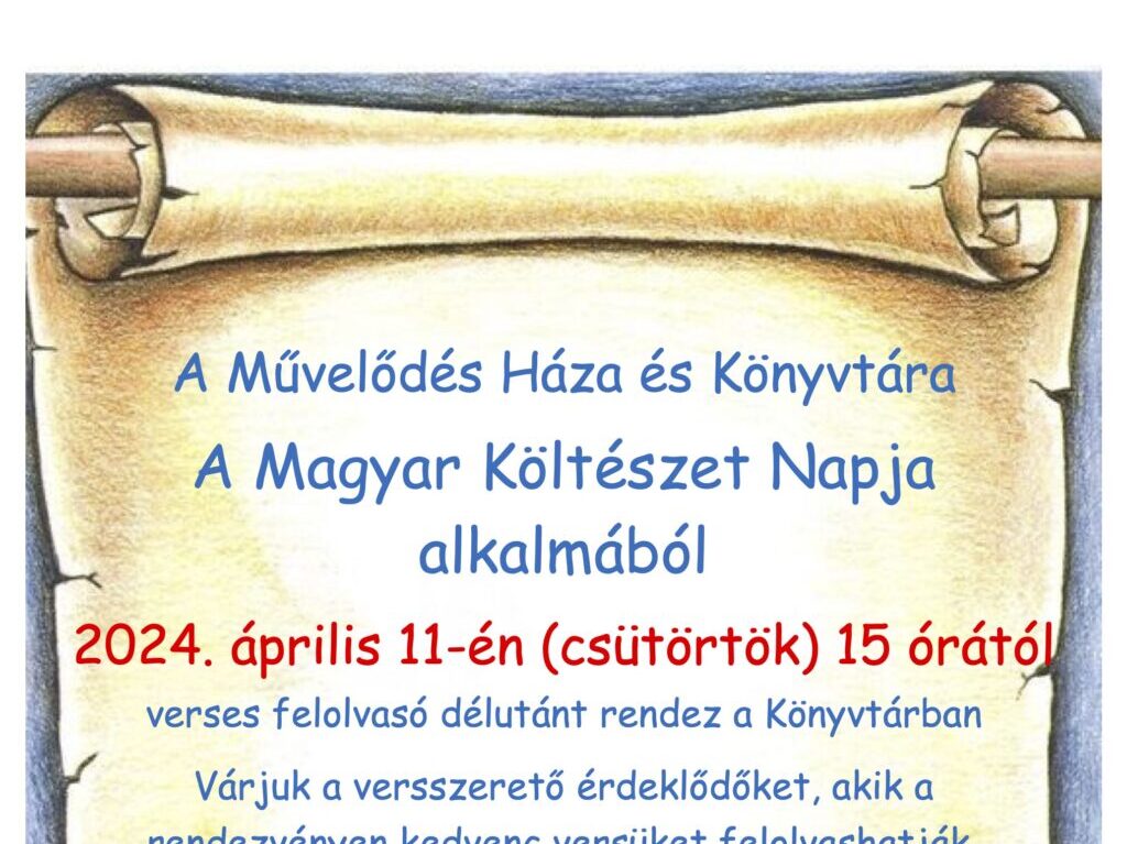 MEGHÍVÓ A Művelődés Háza és Könyvtára szeretettel meghívja Önt 2023. december 11-én (hétfő) 15 órától Irodalmi teadélutánra Advent a magyar irodalomban Helyszín: könyvtárunk olvasóterme Mindenkit sok szeretettel és meleg teával várunk!