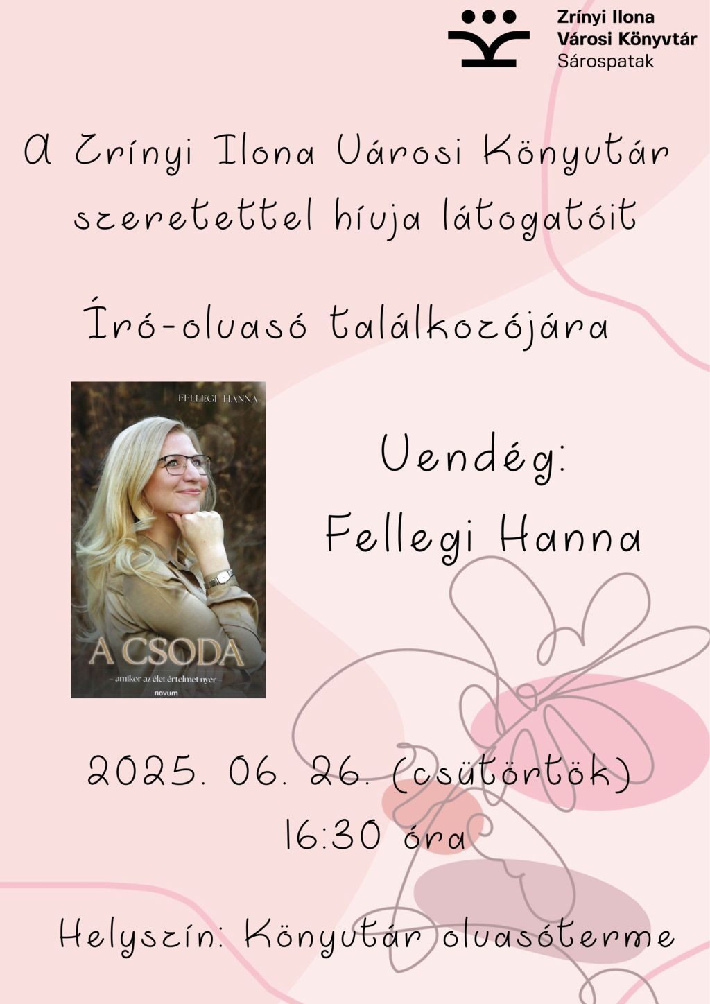 Fellegi Hanna író-olvasó találkozó 2025.06.26. 2025. június 19. 06:45 A Művelődés Háza és Könyvtára Nyitó hírek Megosztás Facebook (0) Google + (0) Küldés E-mail-ben Nyomtatás Feltöltő Tóth Gábor