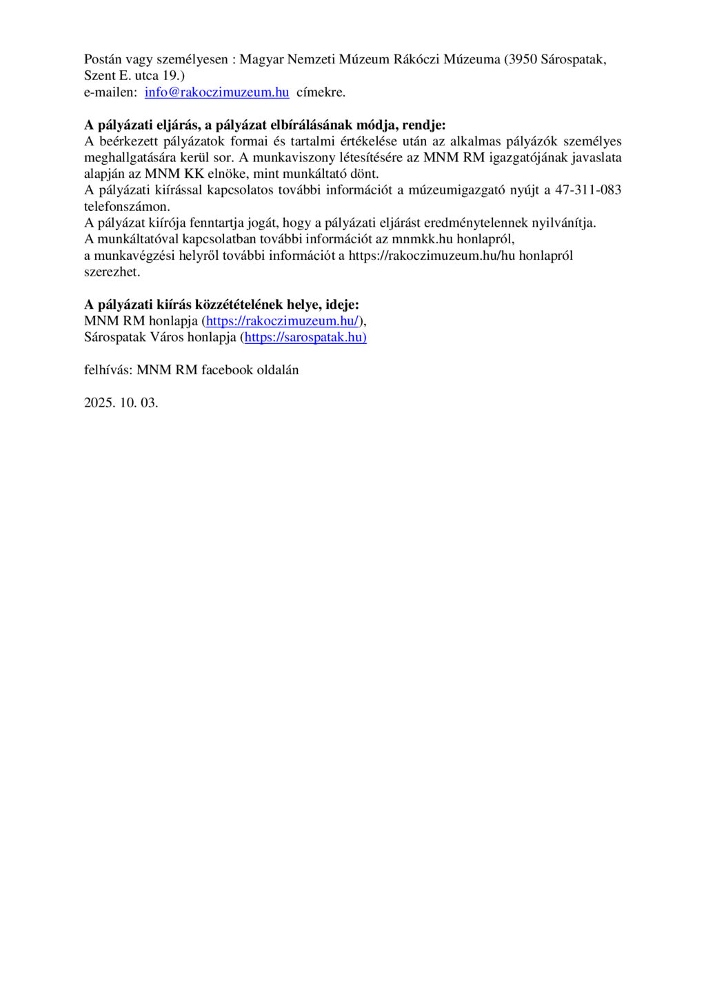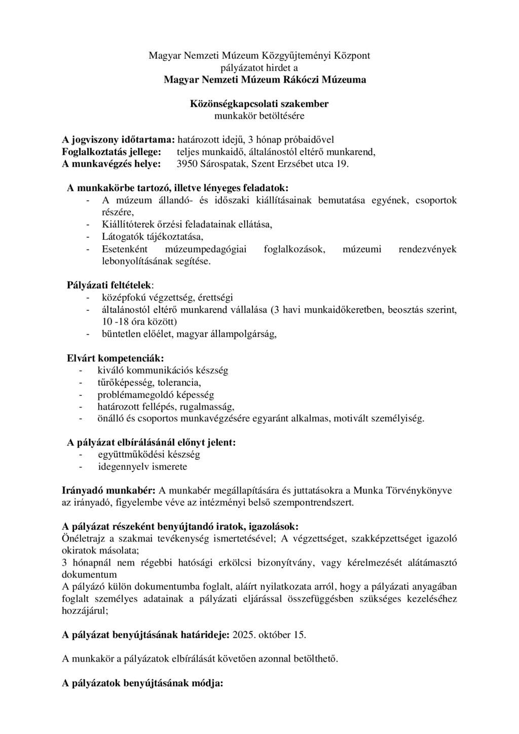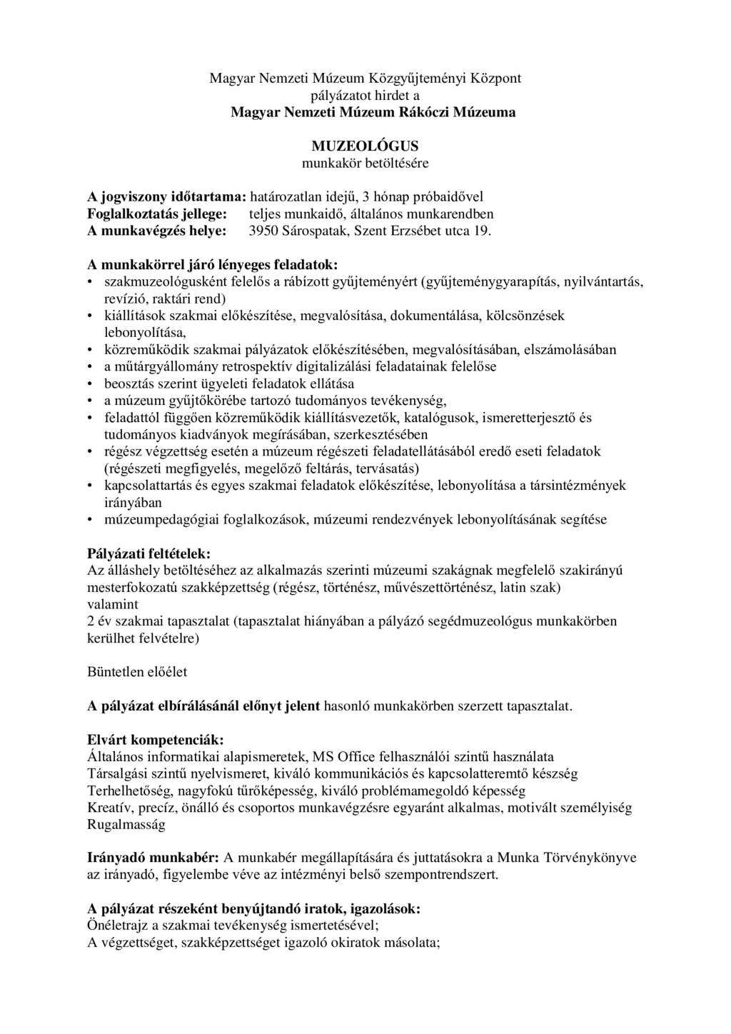 Magyar Nemzeti Múzeum Rákóczi Múzeuma álláspályázatai 12 órával ezelõtt 09:10 Kultúra MNM Rákóczi Múzeuma Nyitó hírek Megosztás Facebook (0) Google + (0) Küldés E-mail-ben Nyomtatás Feltöltő Tóth Gábor