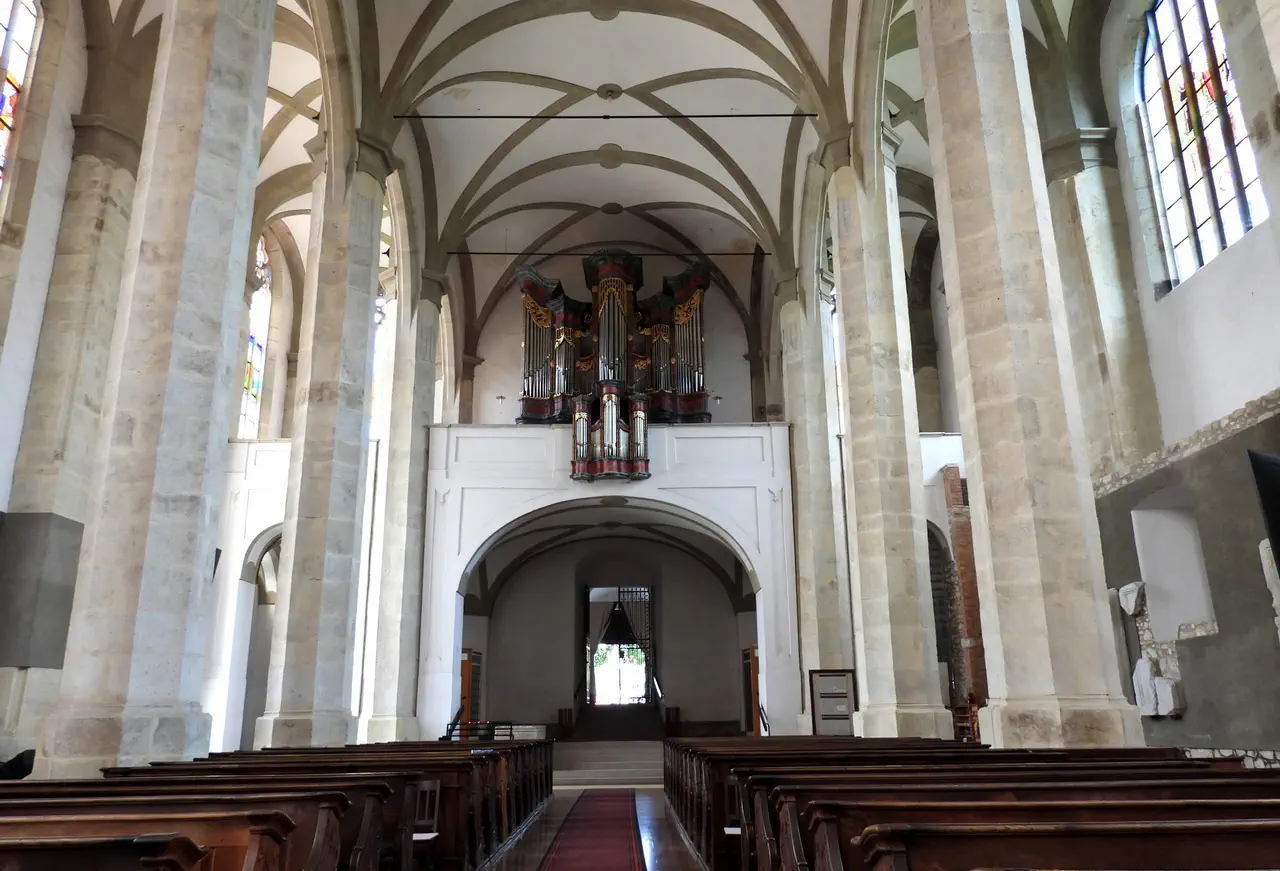 A statikai viszonyok miatt a boltozat oldalnyomása az oszlopsort kifelé tolta: ha belépsz és elindulsz a főhajóban, figyeld meg, hogy az oszlopok közül több 15–18 cm-t dől kifelé – a templom egyik jellegzetes „hibája”, ami ma már a bájához tartozik.